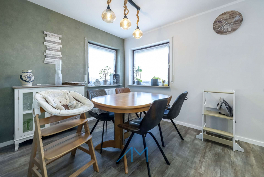 Auf rund 98 m² Wohnfläche und einer Gesamtfläche von ca. 124 m² erwartet Sie eine durchdachte Aufteilung, die den Alltag leicht und angenehm macht. Der helle Wohn- und Essbereich mit Blick in den sonnigen Garten, bildet das Herz des Hauses – ein Platz, an dem das Leben spielt: Kinder, die draußen toben, gemeinsame Grillabende oder stille Momente im Grünen. Die überdachte Freisitz schenkt Ihnen dabei zu jeder Jahreszeit ein Stück Urlaubsgefühl.