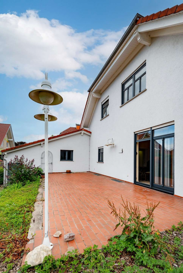 Das Haus ist voll unterkellert und bietet darüber hinaus eine Doppelgarage, elektrische Rollläden, Glasfaseranschluss sowie flexibel nutzbare Räume, ideal für Familie, Gäste oder das Arbeiten von zu Hause.
