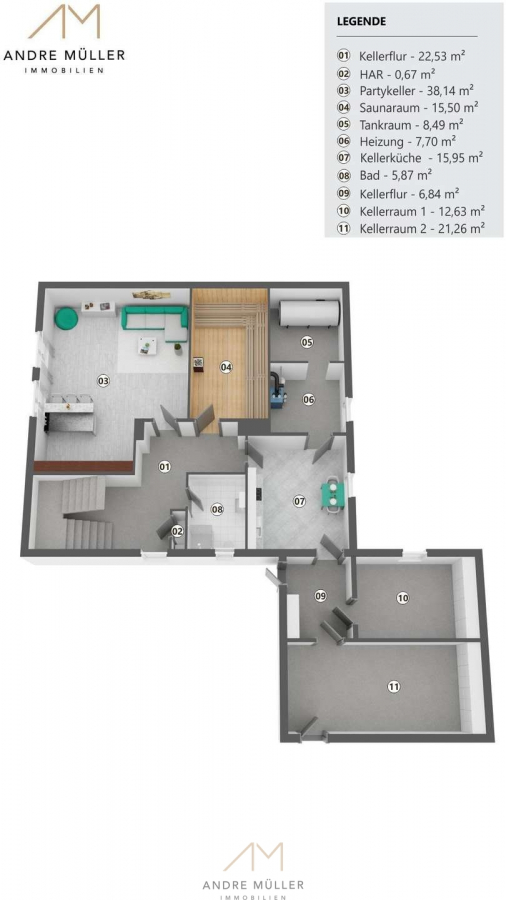 Beheizter Vollkeller mit Nutzräumen und Abstellflächen