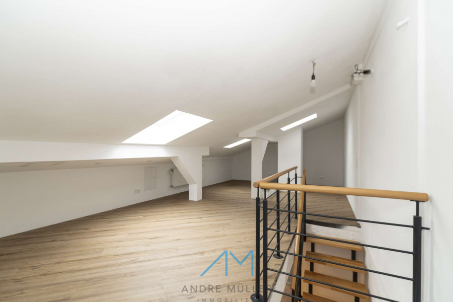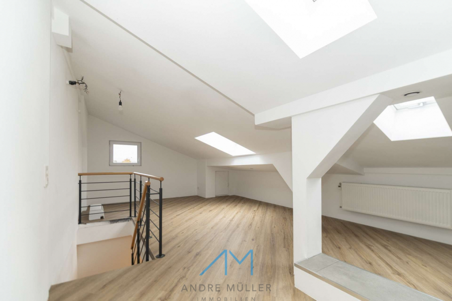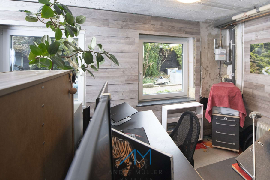 Im klimatisierten Dachstudio finden Sie einen idealen Ort für konzentriertes Arbeiten oder entspanntes Wohnen – ob als Homeoffice oder zusätzliches Schlafzimmer. Der Keller ist über eine separate Außentreppe zugänglich und bietet viel Stauraum oder Raum für Ihre Hobbys.