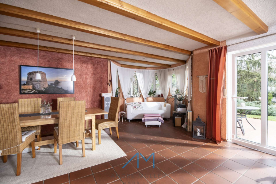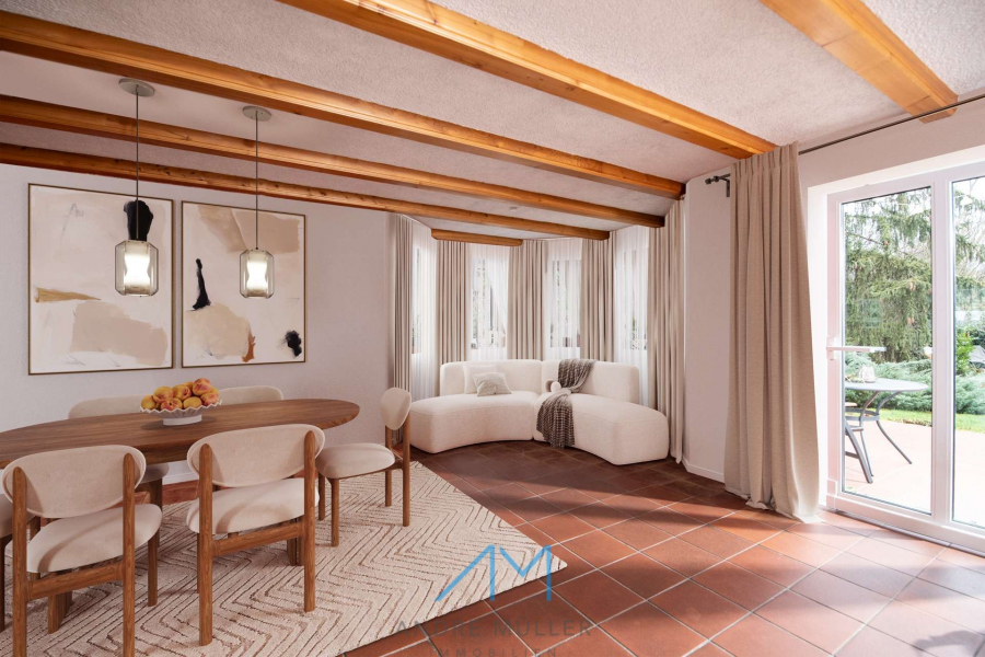 Schon beim Betreten spürt man die besondere Atmosphäre: Großzügige 187 m² Wohnfläche, verteilt auf sechs helle, vielseitig nutzbare Zimmer, laden zum Ankommen und Wohlfühlen ein. Das Herzstück bildet das lichtdurchflutete Wohn-Esszimmer mit Erker und hochwertigem Kachelofen – ein Ort, an dem Familie, Freunde und stille Momente ihren Platz finden. Der elegante Glasbalkon aus dem Jahr 2020 öffnet den Blick auf den traumhaften Garten und schafft eine harmonische Verbindung von drinnen und draußen.