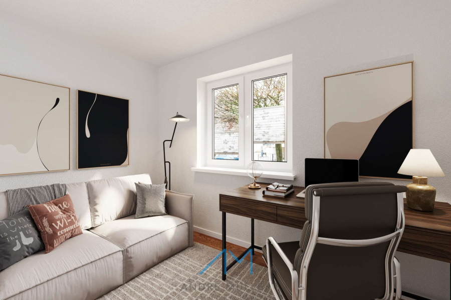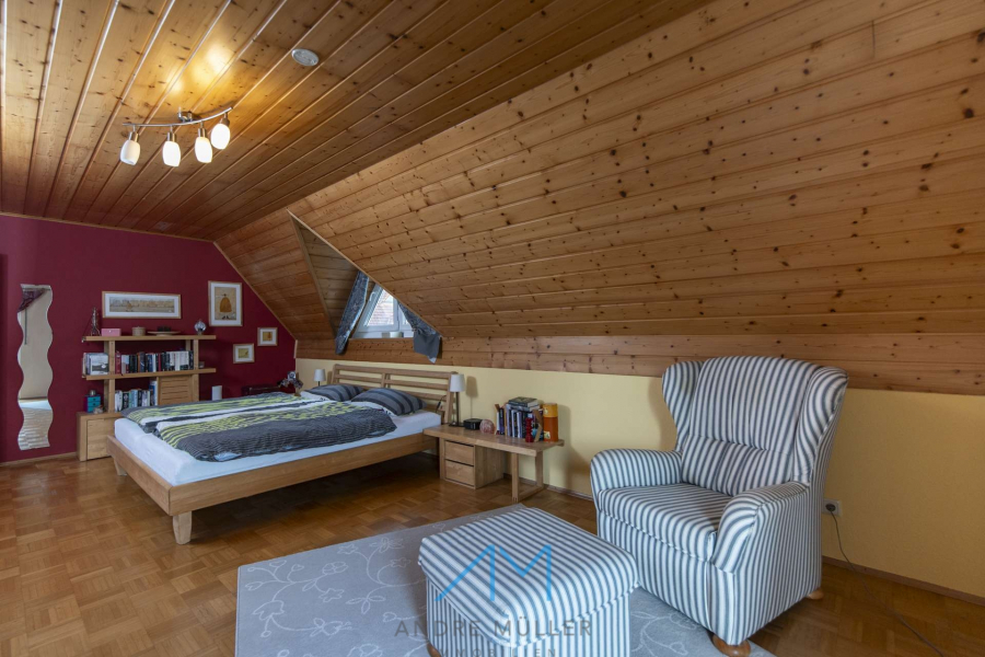 Das großzügige Studio im Dachgeschoss bietet Rückzugsraum für Kreativität oder Entspannung, während der voll unterkellerte Bereich mit Hobbyräumen zusätzlichen Platz für Ihre persönlichen Projekte bietet – sei es als Werkstatt, Fitnessraum oder Heimkino.