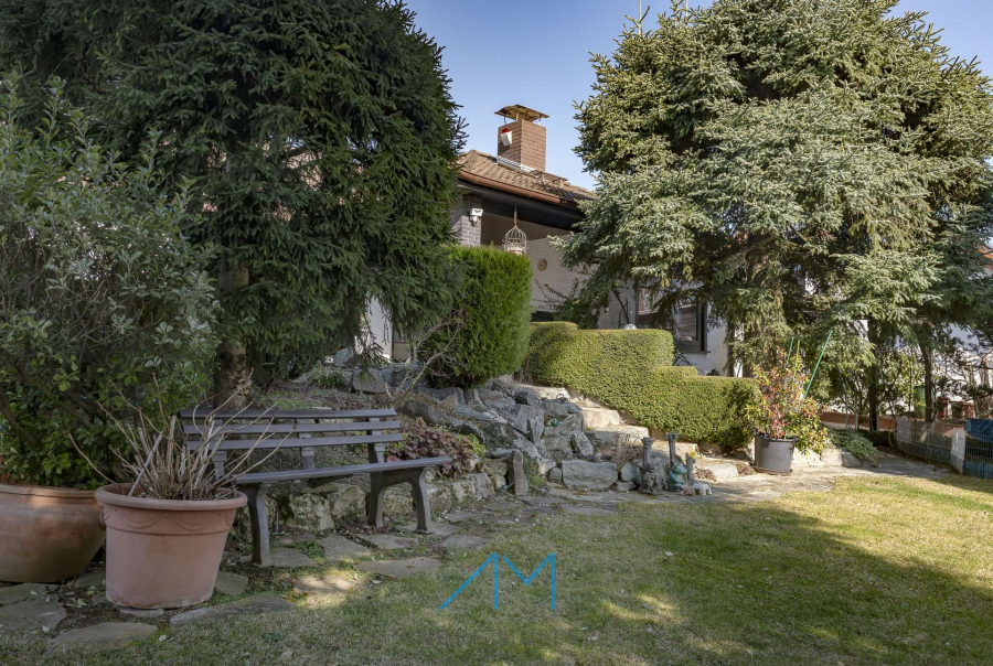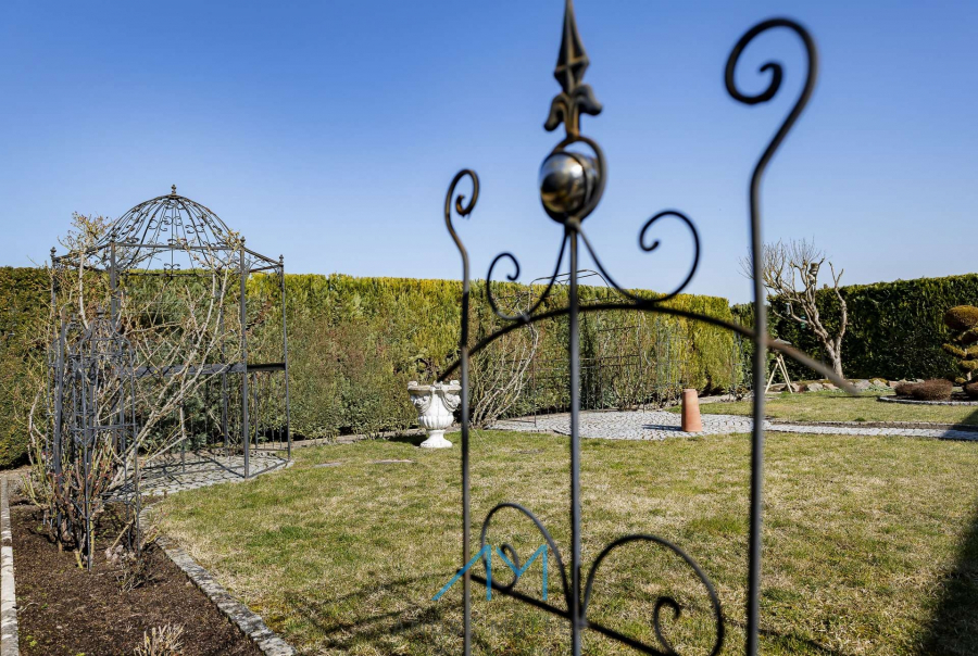 Die weitläufige Terrasse öffnet sich zum traumhaft angelegten Garten, der mit seinem dichten Sichtschutz, altem Baumbestand und unverbautem Blick in die Natur einen Rückzugsort schafft, den man selten findet. Ein Ort, an dem Kinder toben, Freunde feiern und man selbst einfach nur die Stille genießen kann.