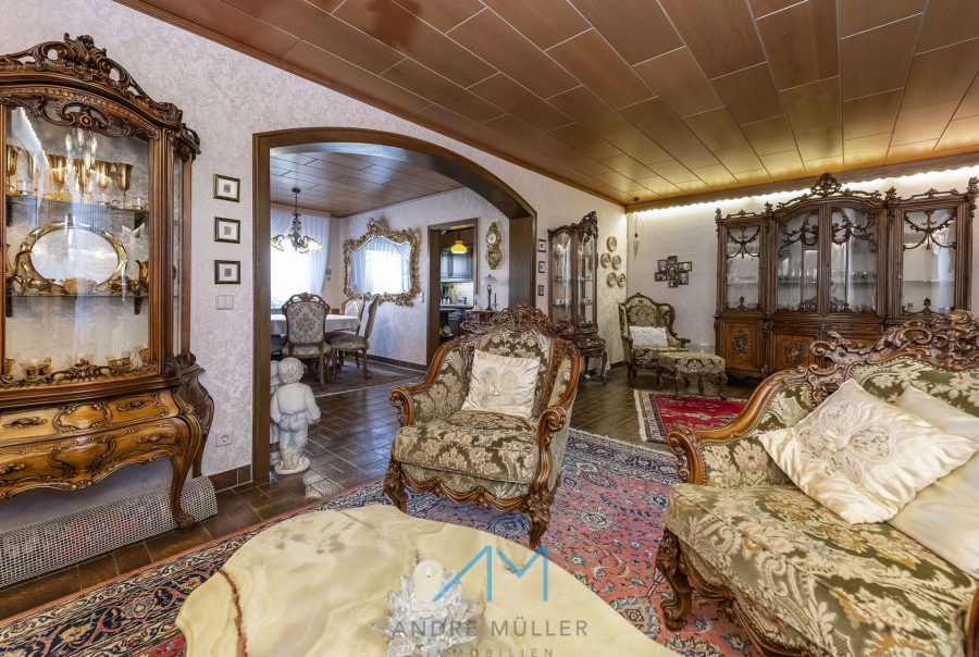 Auf einem beeindruckenden Grundstück von 926 m² entfaltet sich eine Wohnwelt, die zum Ankommen, Durchatmen und Bleiben einlädt. Der offene Wohn- und Essbereich mit seiner gemütlichen Kamin-Sitzecke bildet das Herzstück des Hauses. Große Fenster holen das Grün des Gartens ins Haus und schaffen eine lichtdurchflutete, entspannte Atmosphäre. Hier ist Platz für gemeinsame Stunden, stille Momente und besondere Erinnerungen.