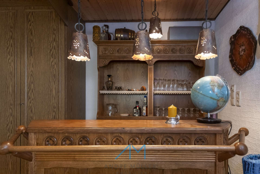 Im Inneren treffen liebevoll erhaltene Stilelemente auf durchdachte Funktionalität. Das Designerbad im Stil der 80er – ein echtes Highlight – und die Möglichkeit, maßgefertigte, handgearbeitete Möbel zu übernehmen, verleihen dem Haus Charakter und Individualität.