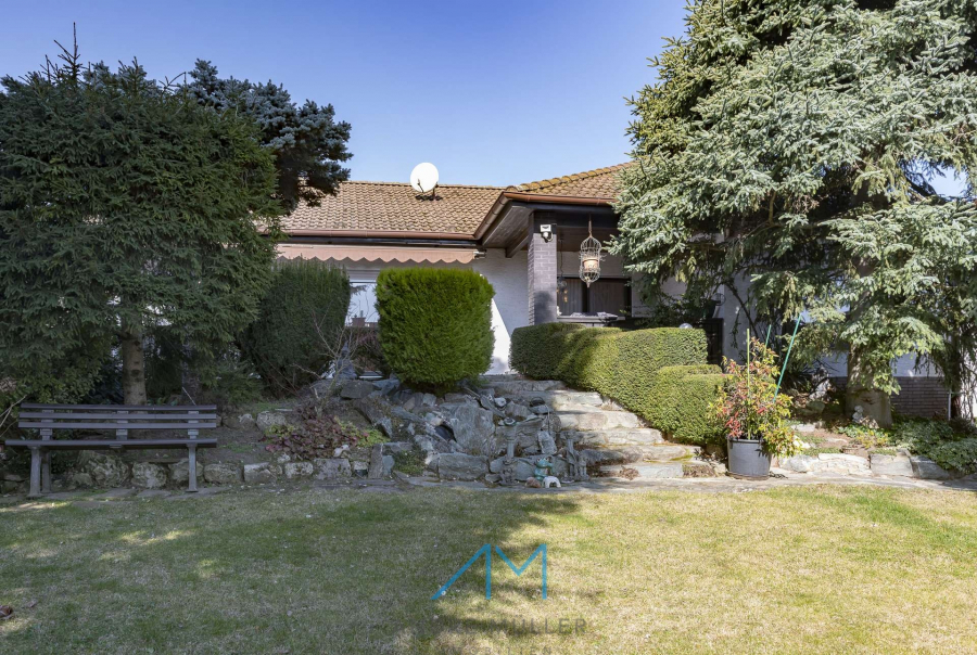 Stilvoller Bungalow in Saulheim, mit 926 qm Grundstück, Gartenparadies, Feldrand !