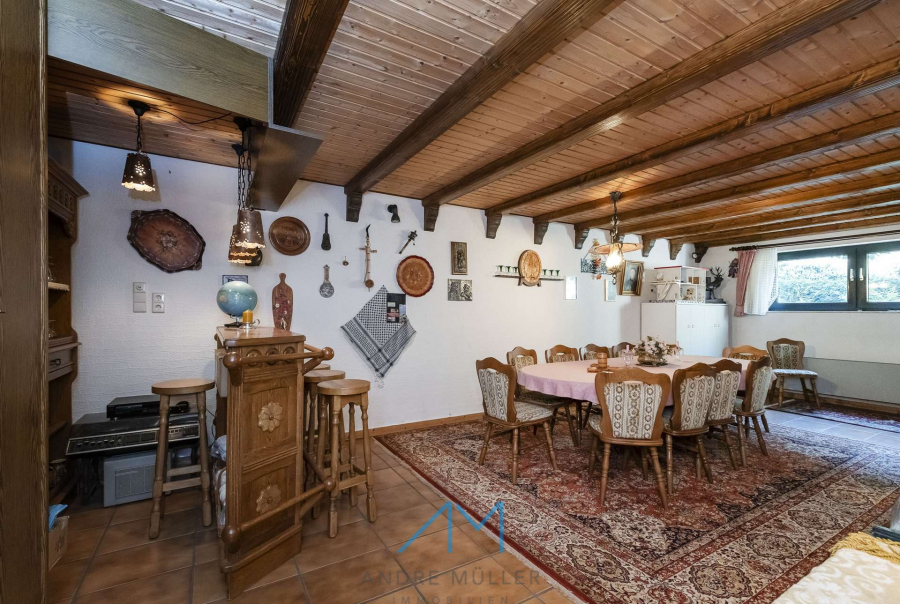 Ein weiterer Schatz verbirgt sich im Untergeschoss: Der teilweise beheizte Keller mit Gästezimmer, Dusch-WC, großem Partyraum und viel Stauraum bietet nicht nur Flexibilität, sondern auch Raum für Ideen. Sogar eine Einliegerwohnung in der Doppelgarage ist denkbar.