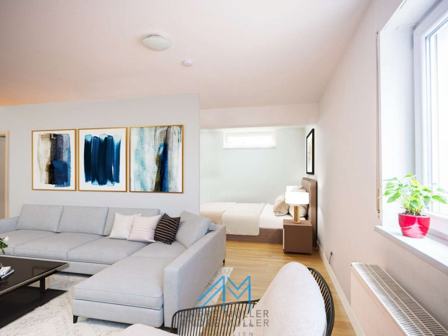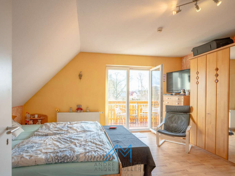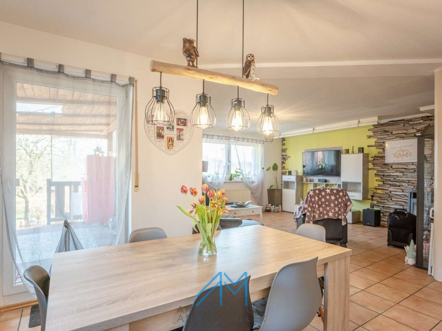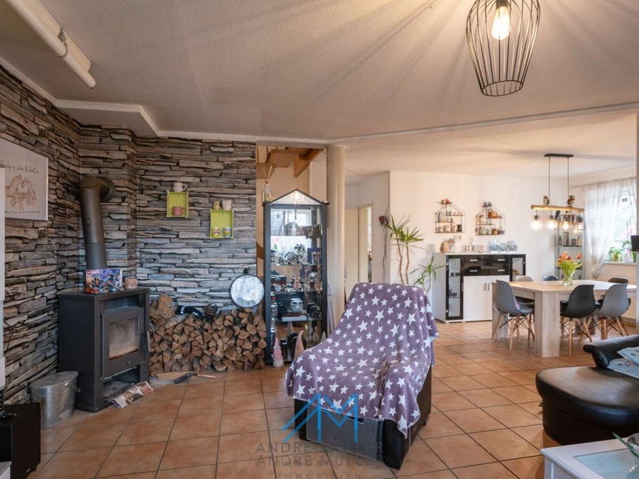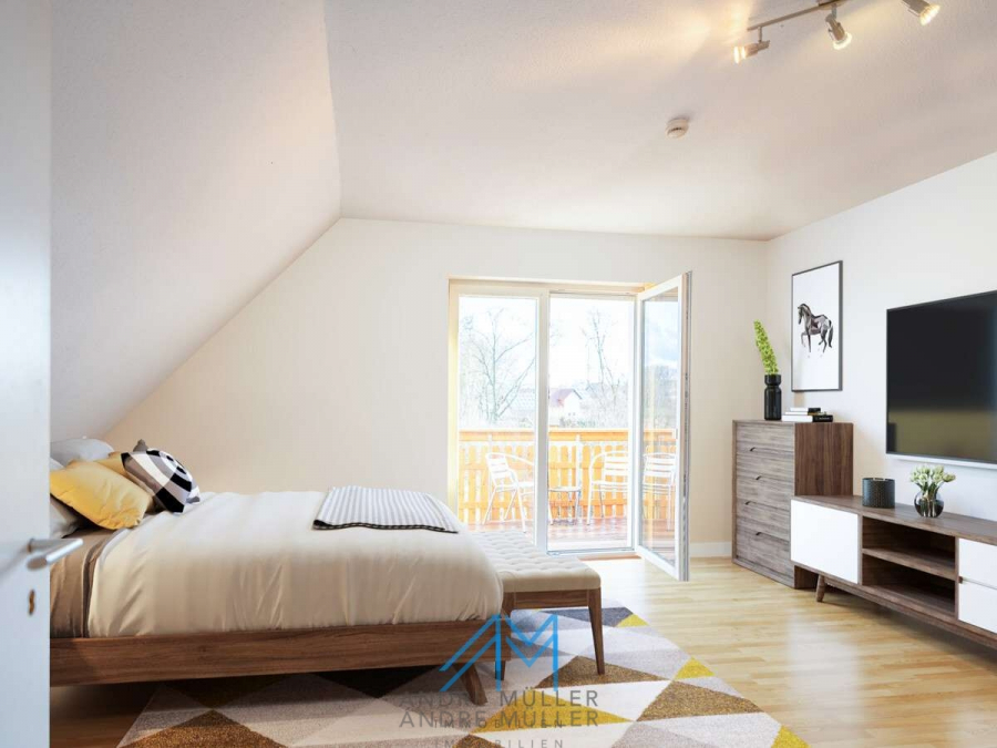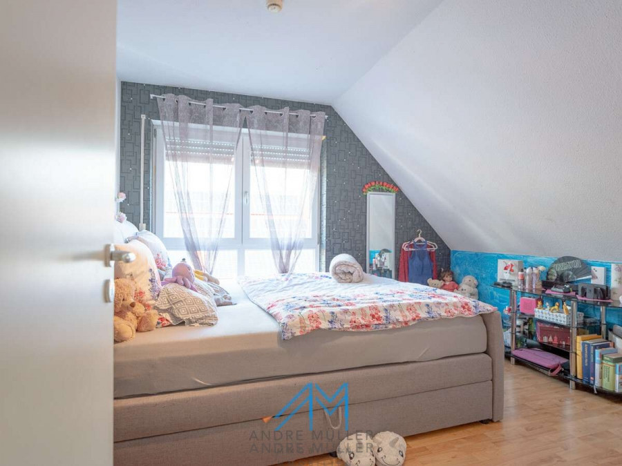 Die Einliegerwohnung im Untergeschoss verfügt über einen separaten Eingang, was sie ideal für Vermietungen oder als ruhigen Rückzugsort für Gäste oder Familienmitglieder macht. Die Hauptwohnung verteilt sich auf das Erdgeschoss mit einem großzügigen Wohn- und Essbereich, inklusive eines einladenden Kamins der an kühlen Abenden für Gemütlichkeit sorgt. Das obere Geschoss offenbart ein geräumiges Badezimmer, ein behagliches Schlafzimmer mit Balkon und zwei einladende Kinderzimmer – ein idyllisches Setting für das Familienleben. Eine kleine Treppe führt zum ausgebauten Dachboden, der zusätzlichen Raum für Kreativität und Entspannung bietet.